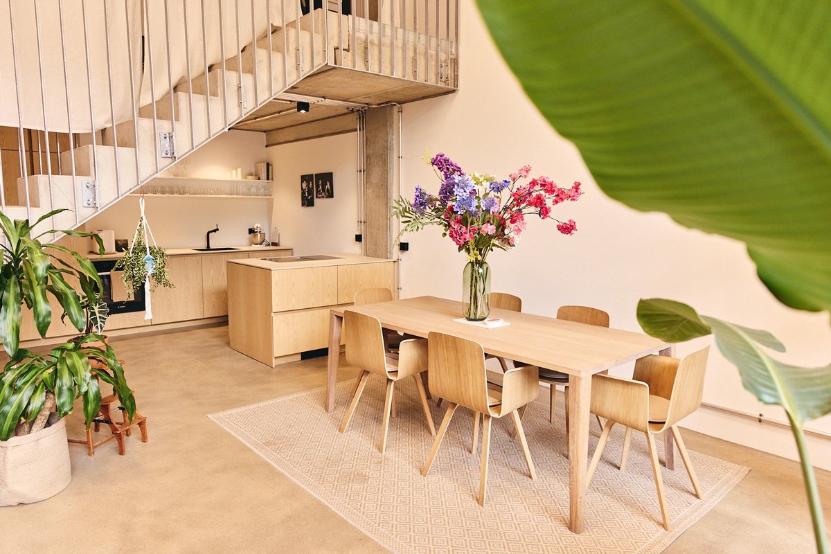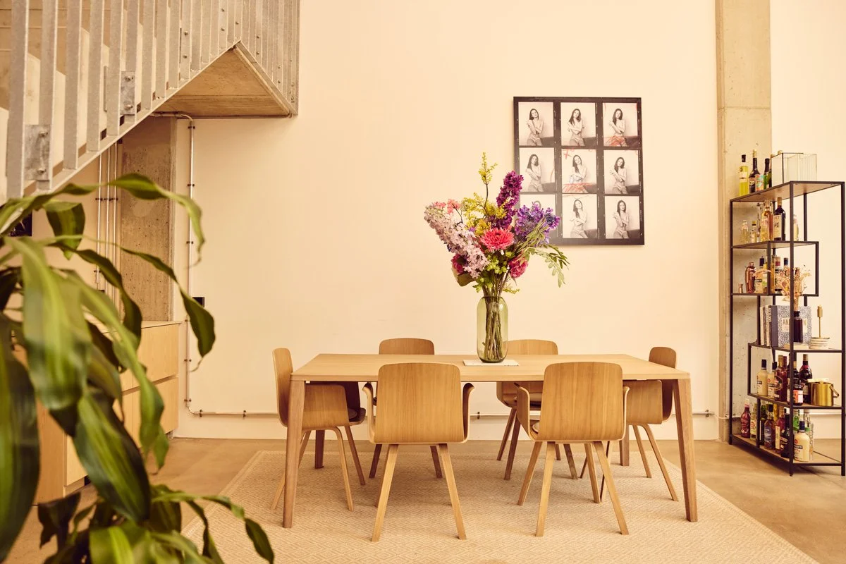 Mit ca. 125 m² Loftfläche überzeugt das BEVERLY STUDIO durch seine großzügige Raumwirkung, hohe Decken (ca. 5,4 m) und den charaktervollen Sichtbeton-Look, der sowohl minimalistische als auch kreative Umsetzungen ermöglicht. Die offene Raumstruktur schafft Flexibilität – egal, ob für Produkt- und Portraitshootings, Lookbooks, Interviews oder Workshops und kleine Markeninszenierungen.